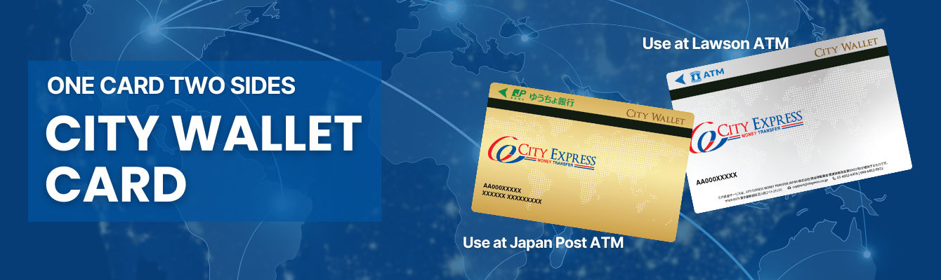 Use the City Remit Card to send money easily through Japan Post Bank ATMs and Lawson ATMs across Japan. Get your card free of charge and send money with ease.
